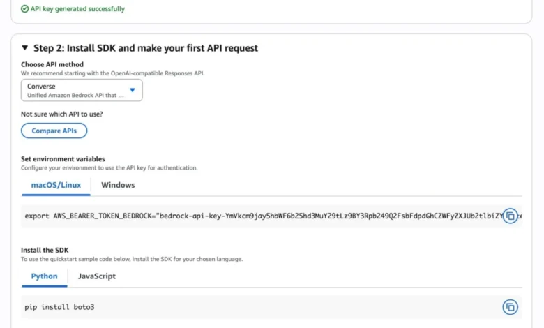 bedrock-runtimeusing the Anthropic SDK orbedrock-mantleendpoints. - AWS SDK and CLI: The model supports the standard Invoke and Converse APIs, allowing for integration into existing AWS-based applications using Python, JavaScript, or the AWS Command Line Interface.