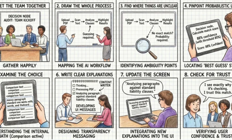 Next, the Content Design team becomes integral. While engineers provide the technical rationale for the AI’s actions, content designers craft clear, human-friendly explanations. A developer’s output might be a technically accurate but user-opaque string like "Executing function 402." A designer’s initial attempt might be overly vague, such as "Thinking." A content strategist bridges this gap, developing precise phrases like "Scanning for liability risks" that convey the AI’s activity without causing confusion.