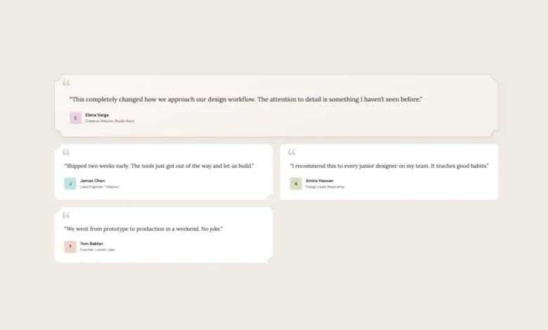 The corner-shape enhancement introduces character. Featured testimonials can adopt a scoop shape, creating concave corners that impart a softer, more hand-crafted feel, particularly effective when paired with serif typography. Alternating testimonial cards can utilize mixed scoop round shapes, giving each card a unique visual personality without requiring additional markup. Author avatars can also transition from simple circles to squircle shapes, adding a subtle but refined touch. The article notes that scoop pairs exceptionally well with serif fonts and warm color palettes, echoing editorial design principles.