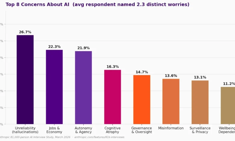 - Cognitive Atrophy (16%): The fear of becoming less able to think independently. Genuine growth requires grappling with difficult questions, and AI should be used to surface insights, not to avoid the struggle.