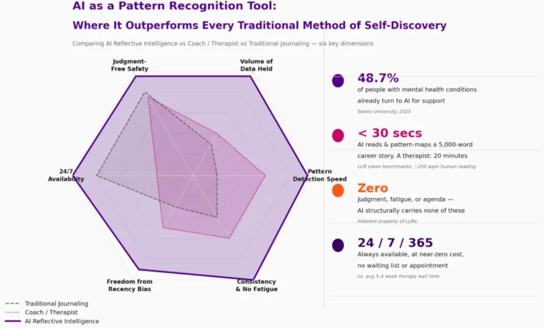 It is essential to clarify that AI is not intended to replace human connection, therapy, or coaching. It is not a sentient being offering wisdom or emotional guidance. Instead, it functions as a sophisticated mirror with memory—a tool that reflects the totality of what an individual has shared, highlighting patterns that have remained hidden, and posing questions that open new avenues of exploration. This "reflective intelligence" enables individuals to engage in the archaeological work of self-discovery, a process that has historically relied on trusted guides, therapists, or the passage of time. Now, AI offers this witness at scale, democratizing access to self-understanding.
